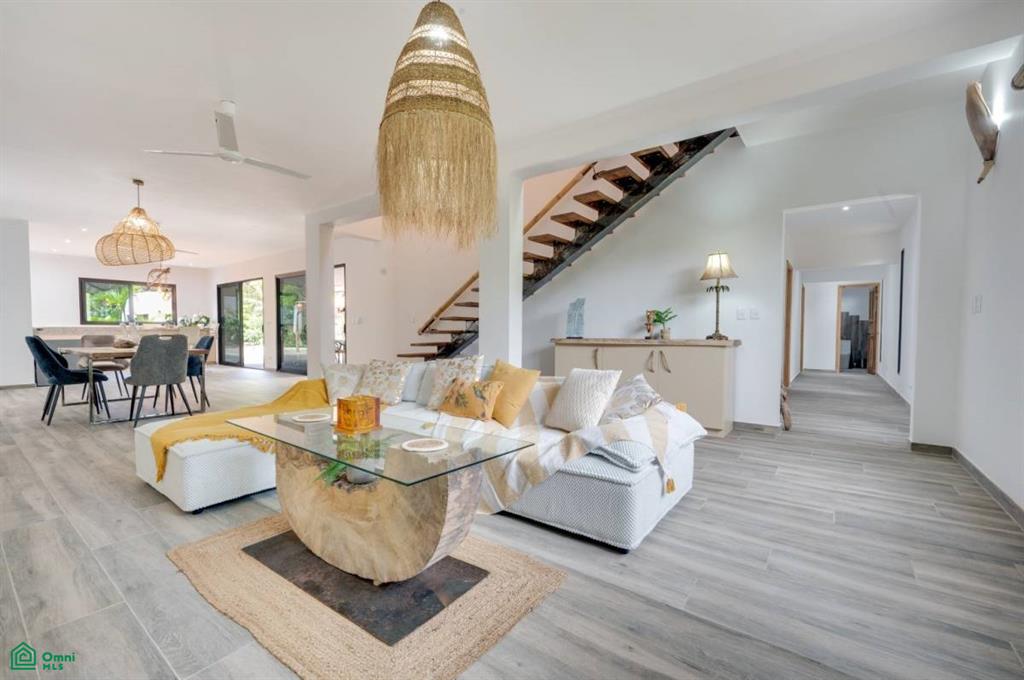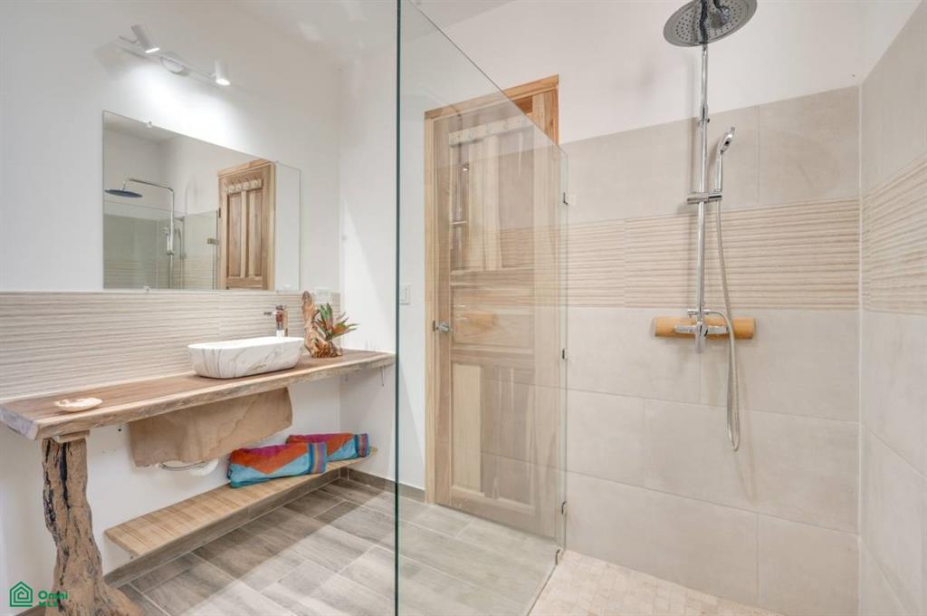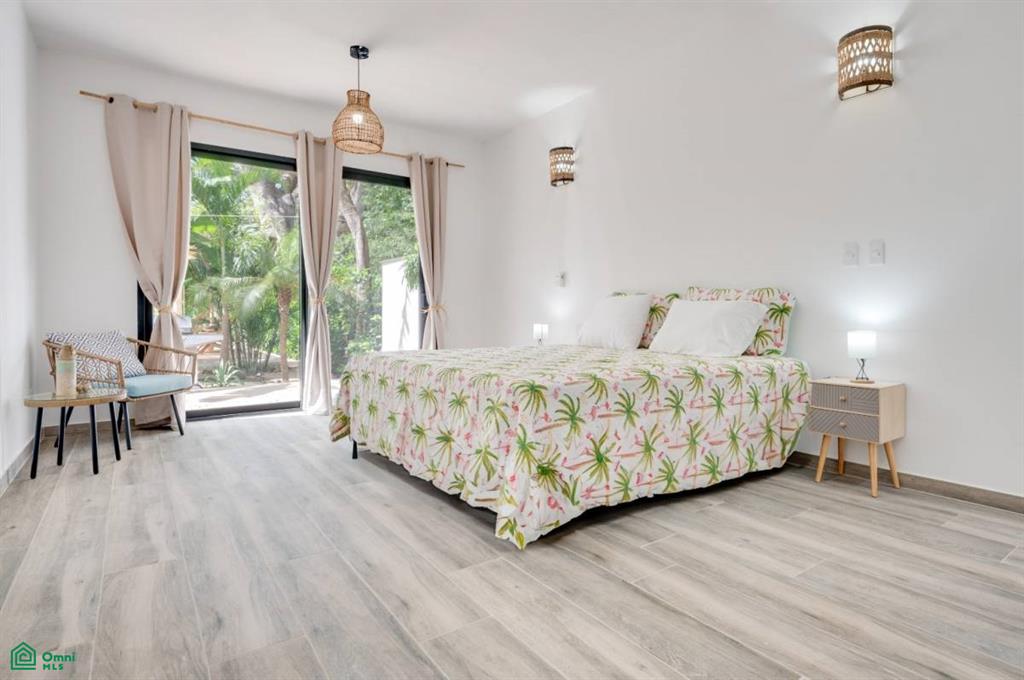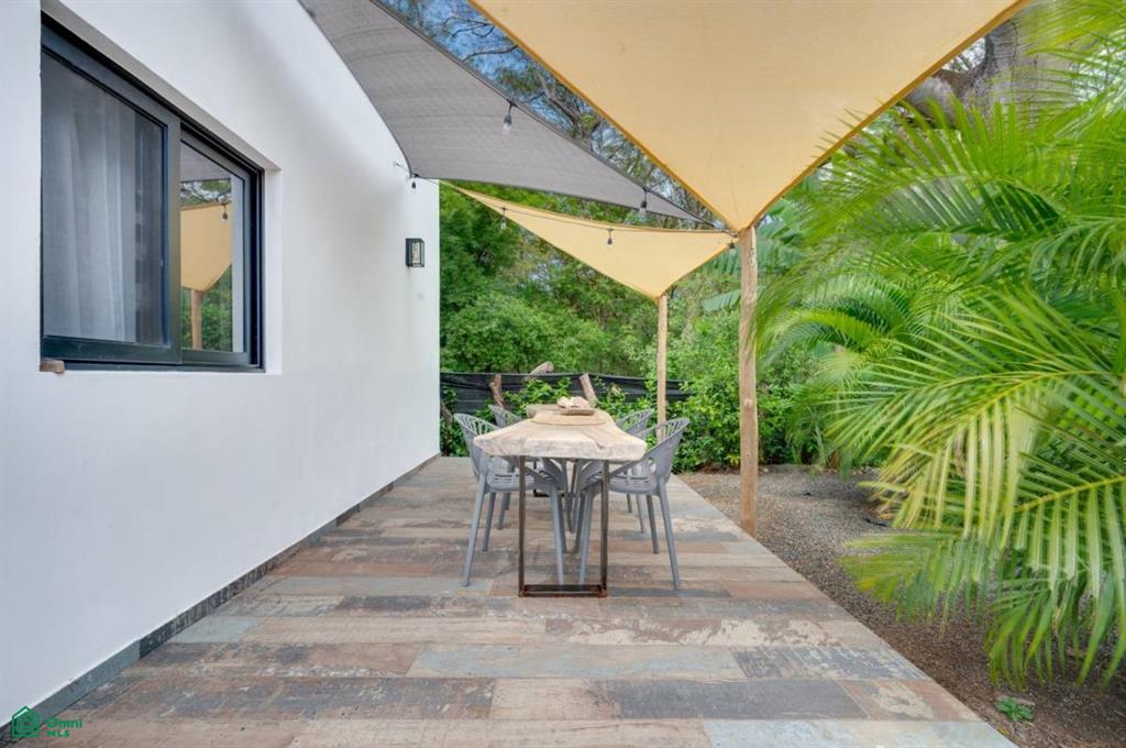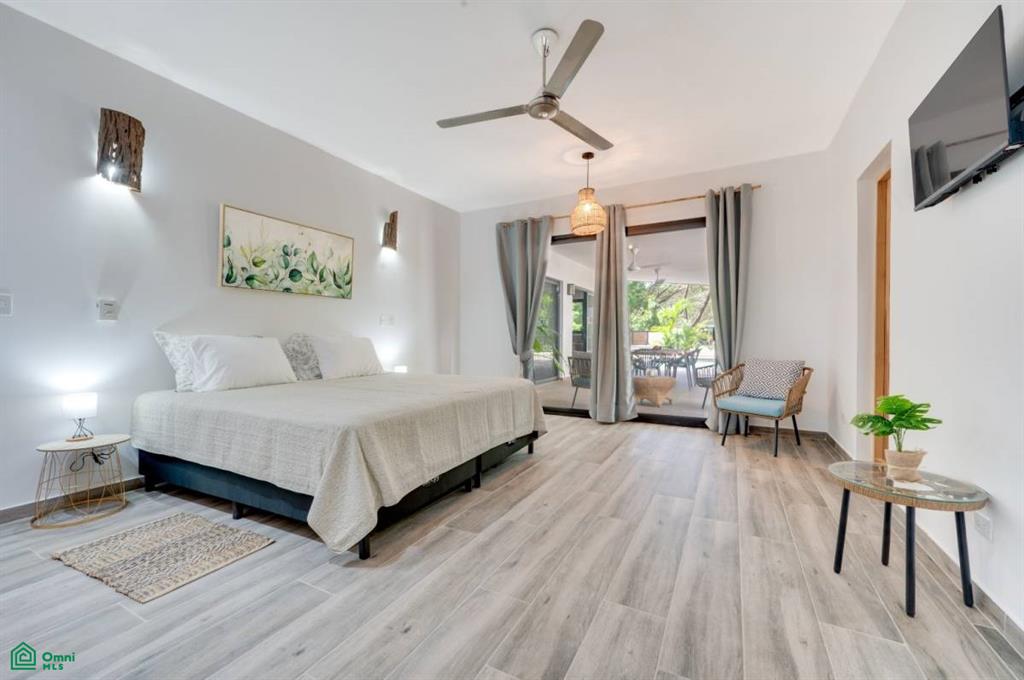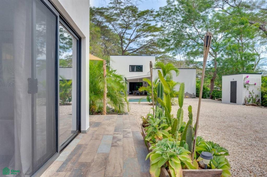 This stunning, modern, fully-equipped villa offers spacious living and high-quality finishes. The 320 m² main house has three bedrooms, each with a private bathroom, as well as a guest bathroom. The master suite is located upstairs, while the other two bedrooms are on the ground floor. Its spacious living, dining, and kitchen reflect an elegant French style and are fully furnished with air conditioning throughout. In addition, the property includes a 62 m² guest house with one bedroom, a bathroom, a kitchen-dining room, and a private terrace, perfect for hosting guests or generating rental income. Outdoors, there is a 24 m² pool surrounded by a 120 m² terrace, a rancho ideal for relaxing, and a tropical garden illuminated at night. A majestic Guanacaste tree provides shade and cool air. The property has an electric gate and a flat 1,423 m² lot, with additional space for future construction. Located in Refundores, just a 15-minute walk from Tamarindo Beach and a 1.6 km drive, it offers privacy and tranquility, as well as proximity to Las Baulas National Marine Park.